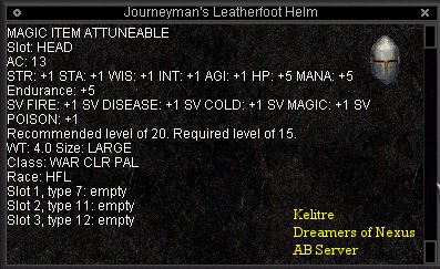 STR: +1 STA: +1 WIS: +1 INT: +1 AGI: +1 HP: +5
