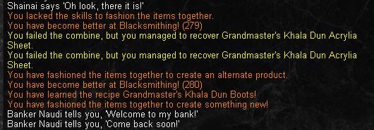 Dam - 15AA points into Salvage, and tried to make some GM DoN armor today. Failed on 2 attempts and salvaged the "Larghe brick of Bronze" so sabing me a wopping 84plat!!!!!